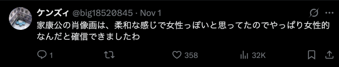 比如她那双锐利的眼睛,和德川家康画像中著名的“鹰眼”神似,都有着仿佛能看穿屏幕的气势。
