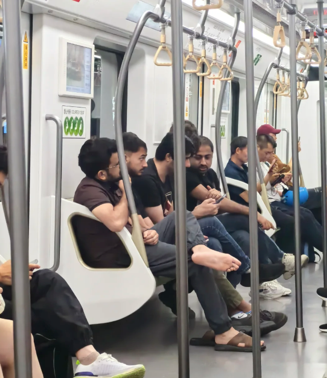 上海这边也没闲着:有人在地铁里拍到一长排印度老哥松弛聊天,倔强的脚掌也是非常的亮眼。
