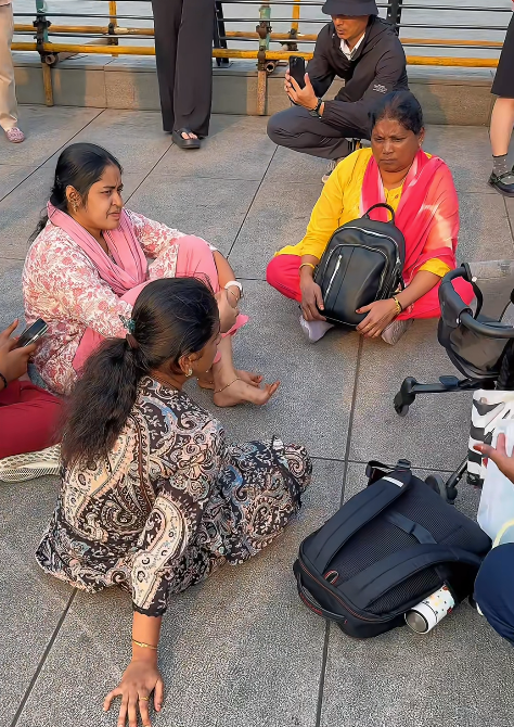 黄浦江边,甚至还能看到几位印度嫂子们在地上围坐聊天,画面极具“异国松弛感”。