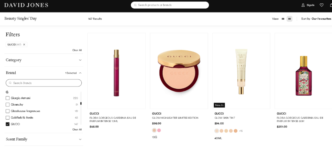 此外,墨妮卡翻了下,连爱马仕和古驰的美妆都参加双十一活动: