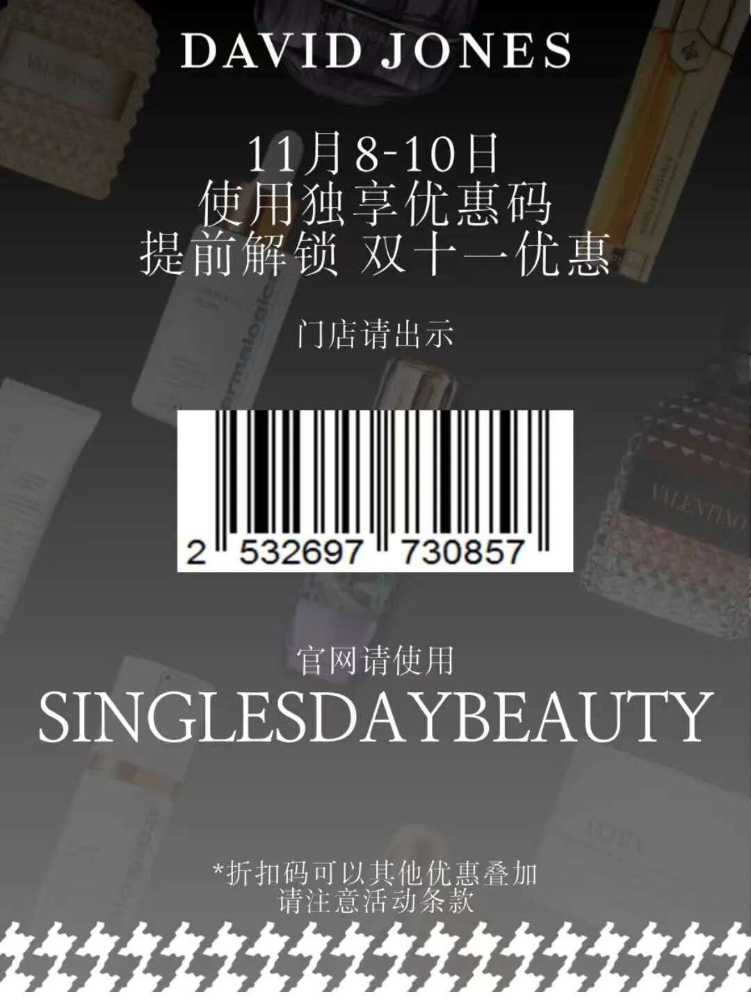 如果官网购物:输入折扣码SINGLESDAYBEAUTY