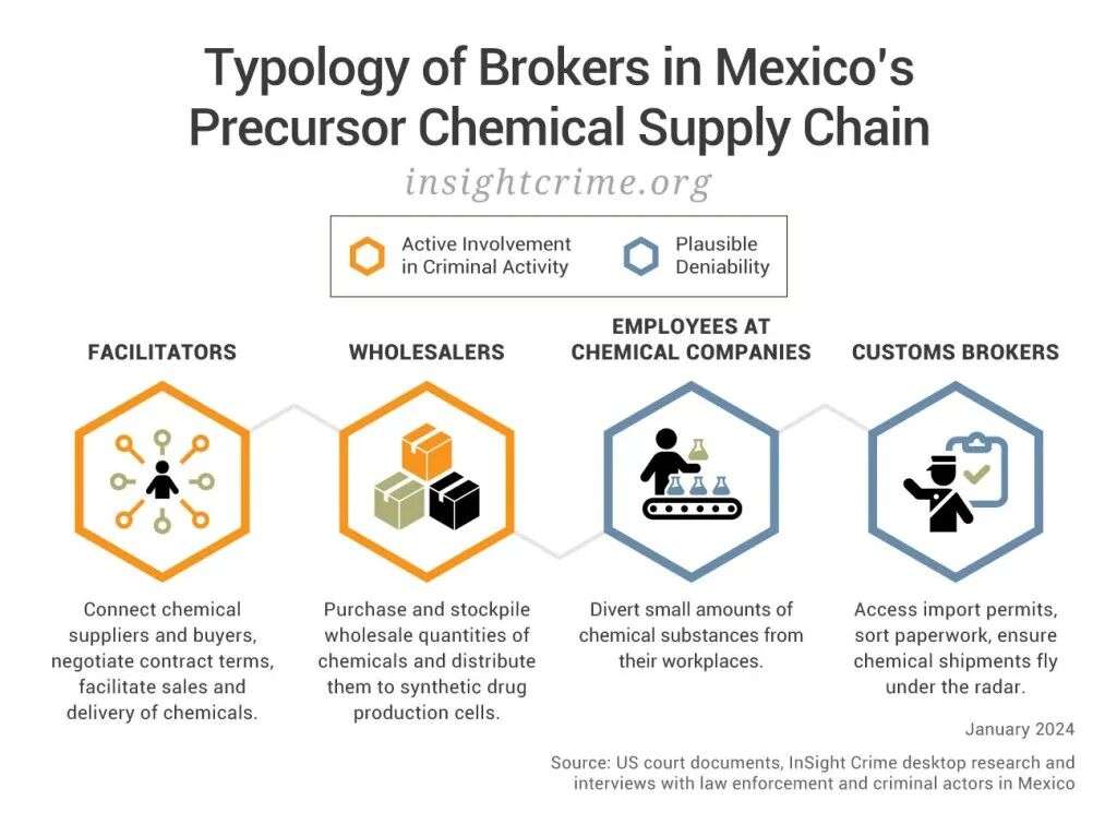 这一角色在大规模毒品犯罪中很关键,他们连接了原本互不相识的毒品生产者、化工企业与贩运集团。