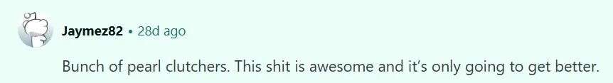 “一群伪善者在这假正经。这玩意儿太棒了,而且只会越来越厉害。”