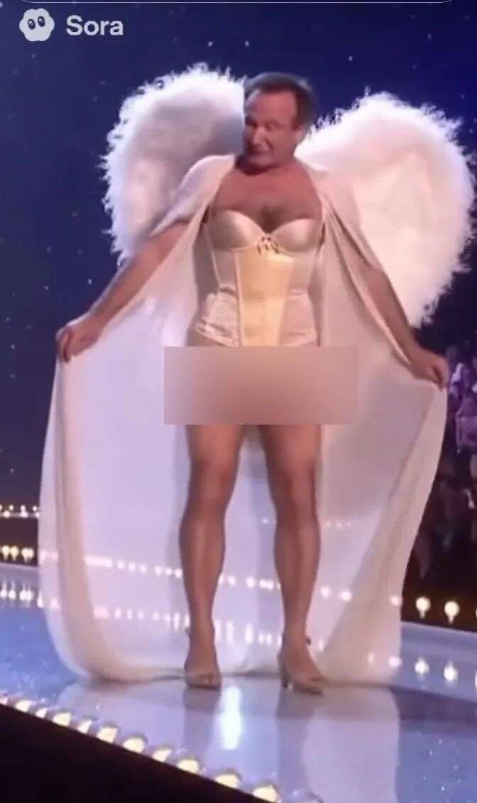 知名美国演员罗宾·威廉姆斯则换上内衣,去参加维密了: