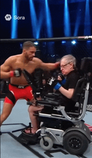 比如霍金,他被安排进格斗比赛,被对手打到失去意识: