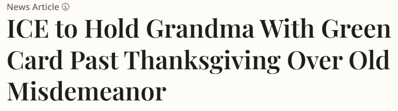 收藏女子持绿卡逾30年刚入境就在机场被抓 感恩节仍将被ICE羁押