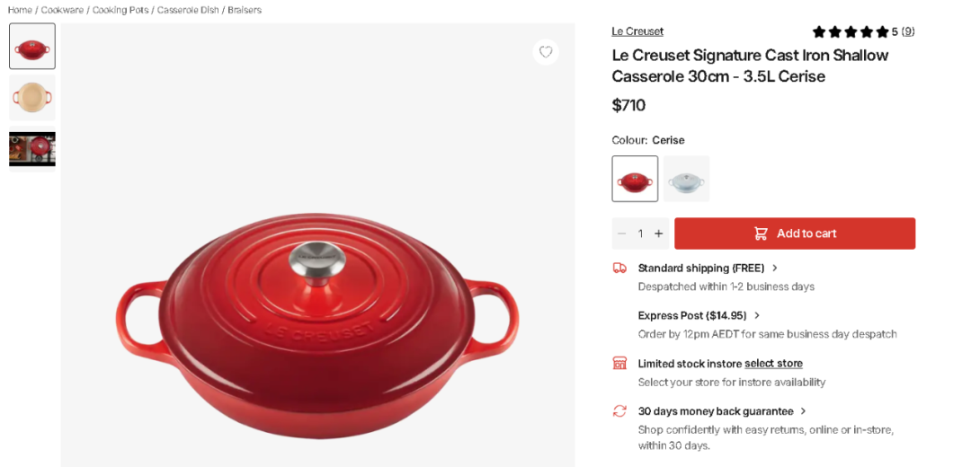 来看看原版的Le Creuset 30cm Casserole多少钱?