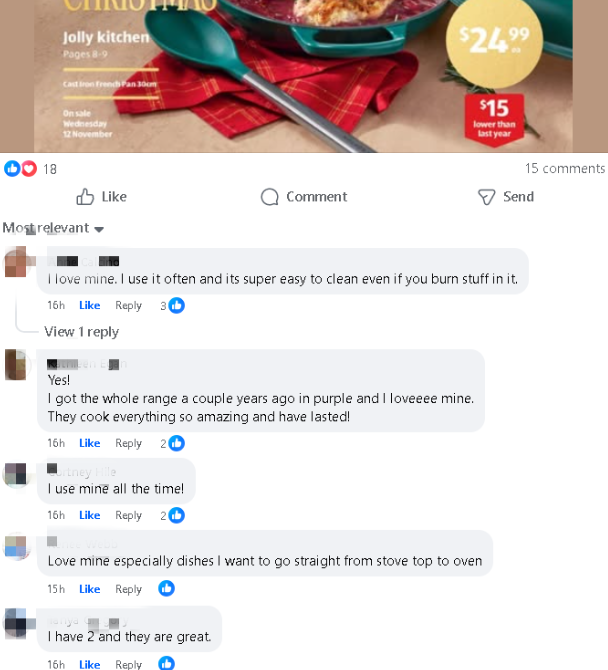 这个“平价版Le Creuset”,老墨在一个35万组员的热门群组里面询问大家的反馈,几乎是清一色的好评: