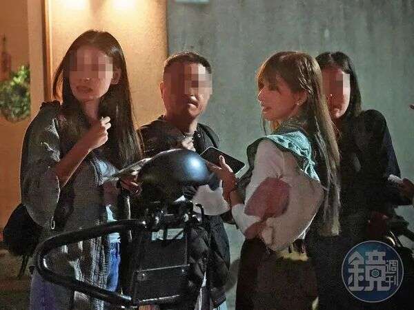 11月5日22:18,一行人吃完晚餐后,在门口闲聊,陪同王心凌(右二)等计程车。(图/镜周刊提供)
