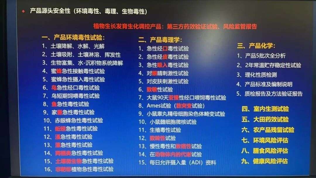 为了从产品源头确保其安全性,一款合格且合规的农药新品登记认证,需历经至少五年的严格考验。在产品研发成功后,企业必须委托权威的第三方机构,完成以下六大试验评估:
