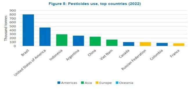联合国粮食组织(FAO)发布的2022年全球农药使用量情况,中国以20多万吨的用量仅列第五