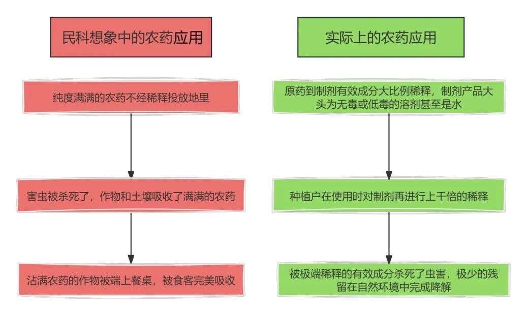 在很多人的想象中,农药的使用仿佛是将原药一吨接一吨地倾倒在田地里,作物因此承载着大量农药残留,看似光鲜亮丽地摆上我们的餐桌,最终进入我们的腹中。但实际上真这么做的话,作物首先就受不了了,毕竟大家都是碳基生物,就你们人类怕投毒?