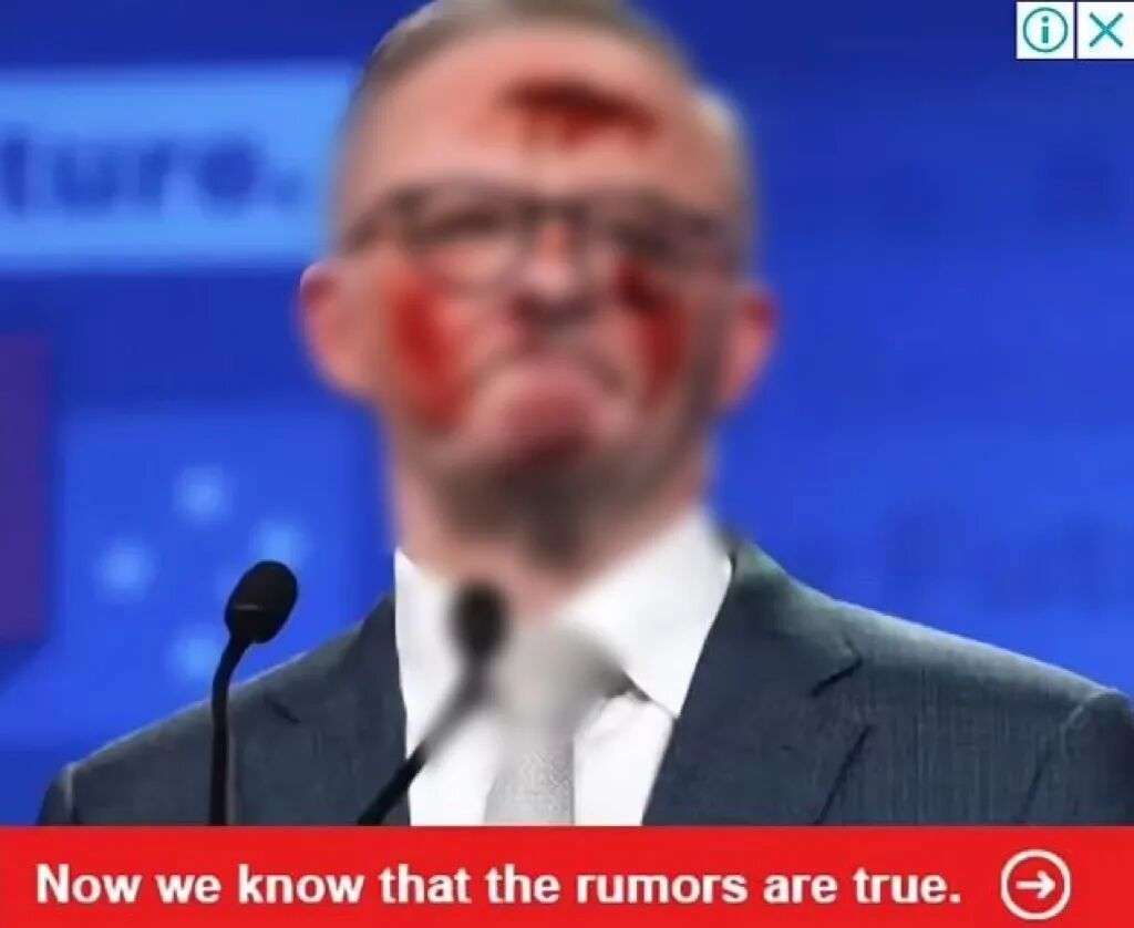 今年八月,总理阿尔巴尼斯也曾被伪造形象,诈骗团伙将阿尔巴尼斯的正常照片篡改为一组脸部带有开放性伤口、血迹斑斑的图片,并配文"现在我们知道传闻是真的了"。