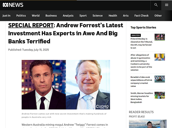 此外,矿业巨头Gina Rinehart和Andrew Forrest也多次成为类似骗局的“代言人”。