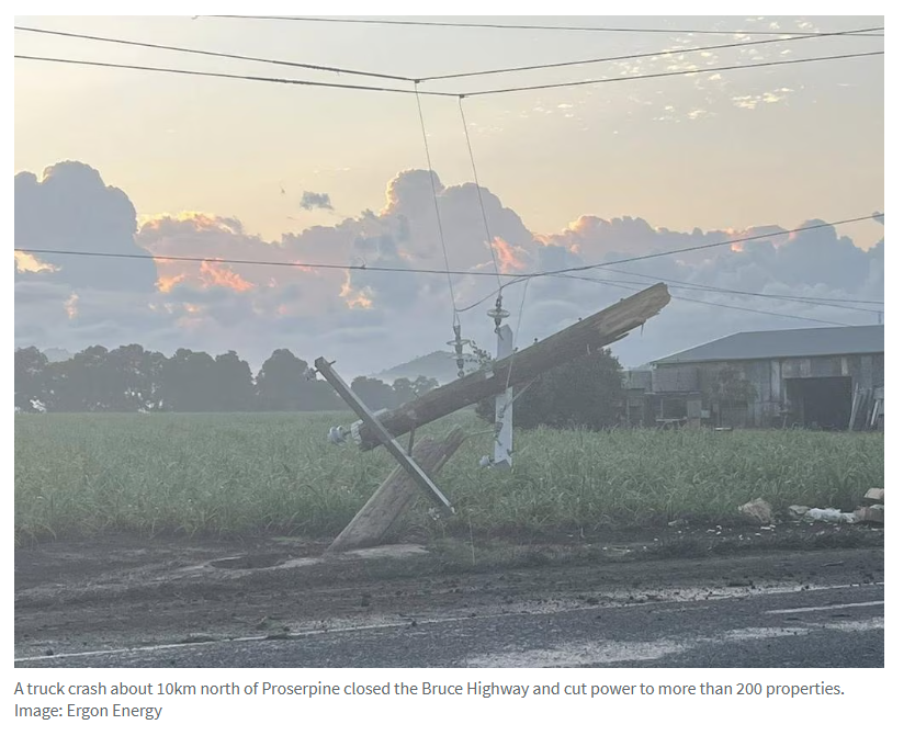 Ergon能源公司确认电线杆已断裂成两截,导致该区域200多户供电中断。