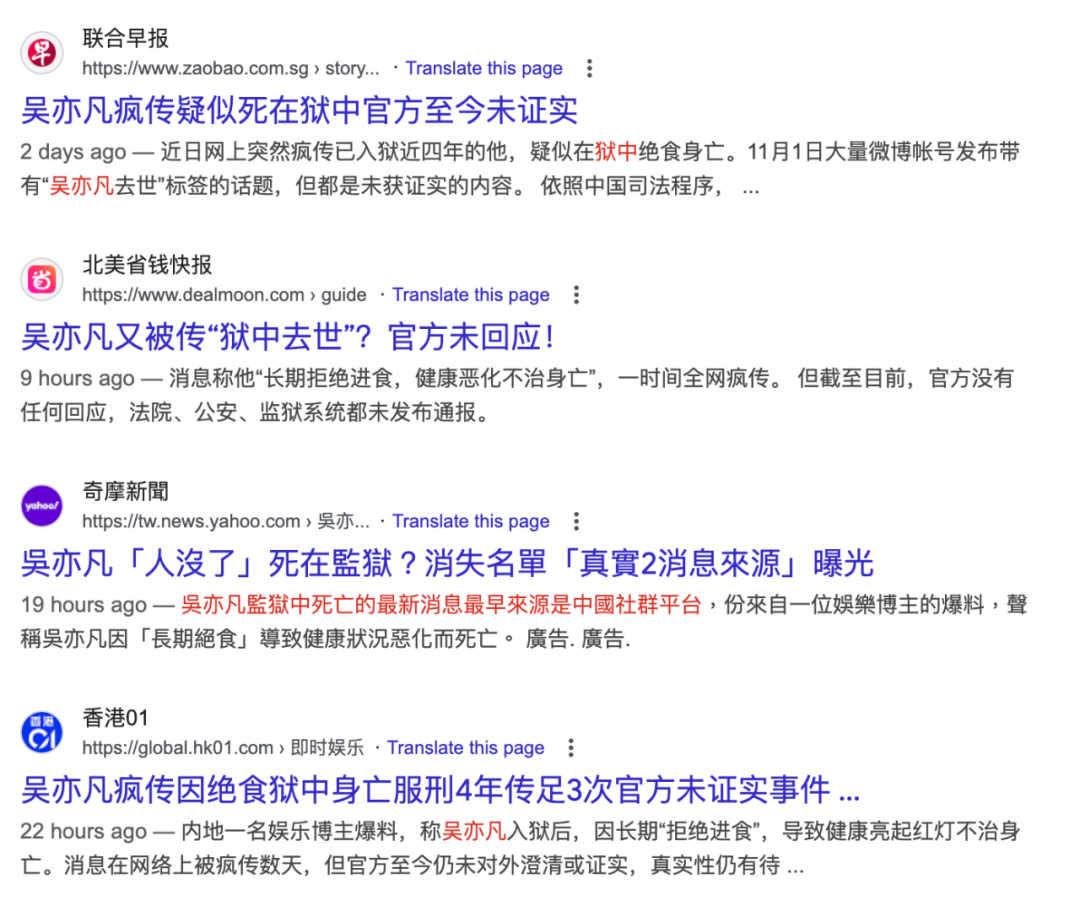 本已沉寂的案子突然迎来新高潮:多家媒体上疯传吴亦凡在狱中“拒绝进食”,身体状况恶化并已死亡。