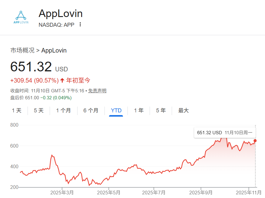 不过在10月初,AppLovin 股价开始下跌,至10月中旬已下跌近 20%,至约 590美元。此前有报道称,美国证券交易委员会(SEC)正在调查该公司在数据收集和广告定向方面的操作。
