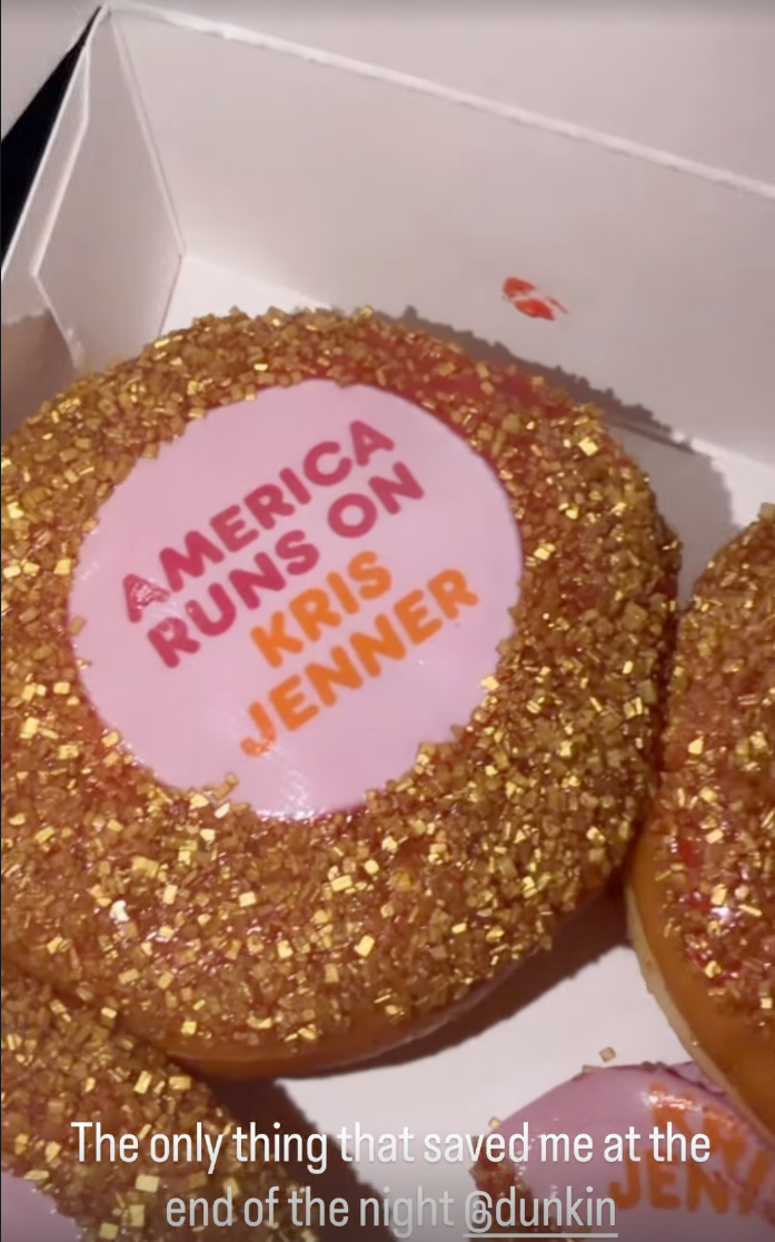 派对最后以派发甜点收尾,现场视频能看到,甜点是经过特别定制的,上面写着几个大字:“克里斯·詹娜驱动美国”。