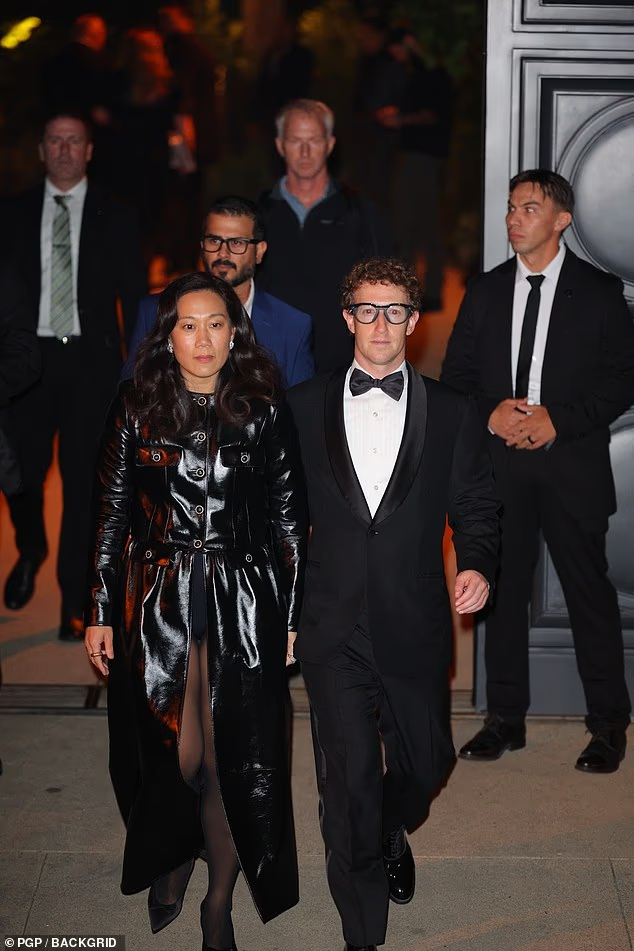 再来是科技界,马克·扎克伯格和妻子一起到场。小扎这次很正式地来了套西装革履,伪人感还是一如既往地强。