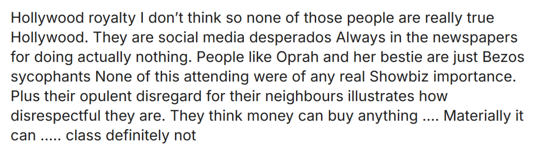 “媒体都说是好莱坞名流聚会,我感觉这些人根本算不上真正的好莱坞精英,不过是社交媒体上的狂热分子罢了,总会因为些屁大点事登上头条。