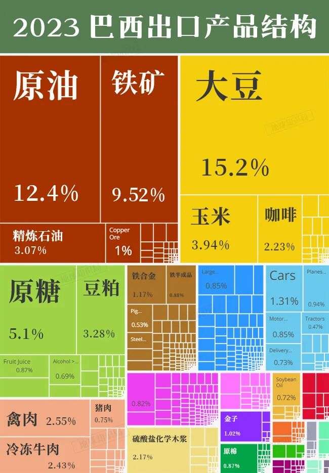 尽管巴西拥有相对完整的工业体系,但在国际市场上的竞争力不强,真正有优势的还是拉美国家的经典两件套:农牧业和矿业。