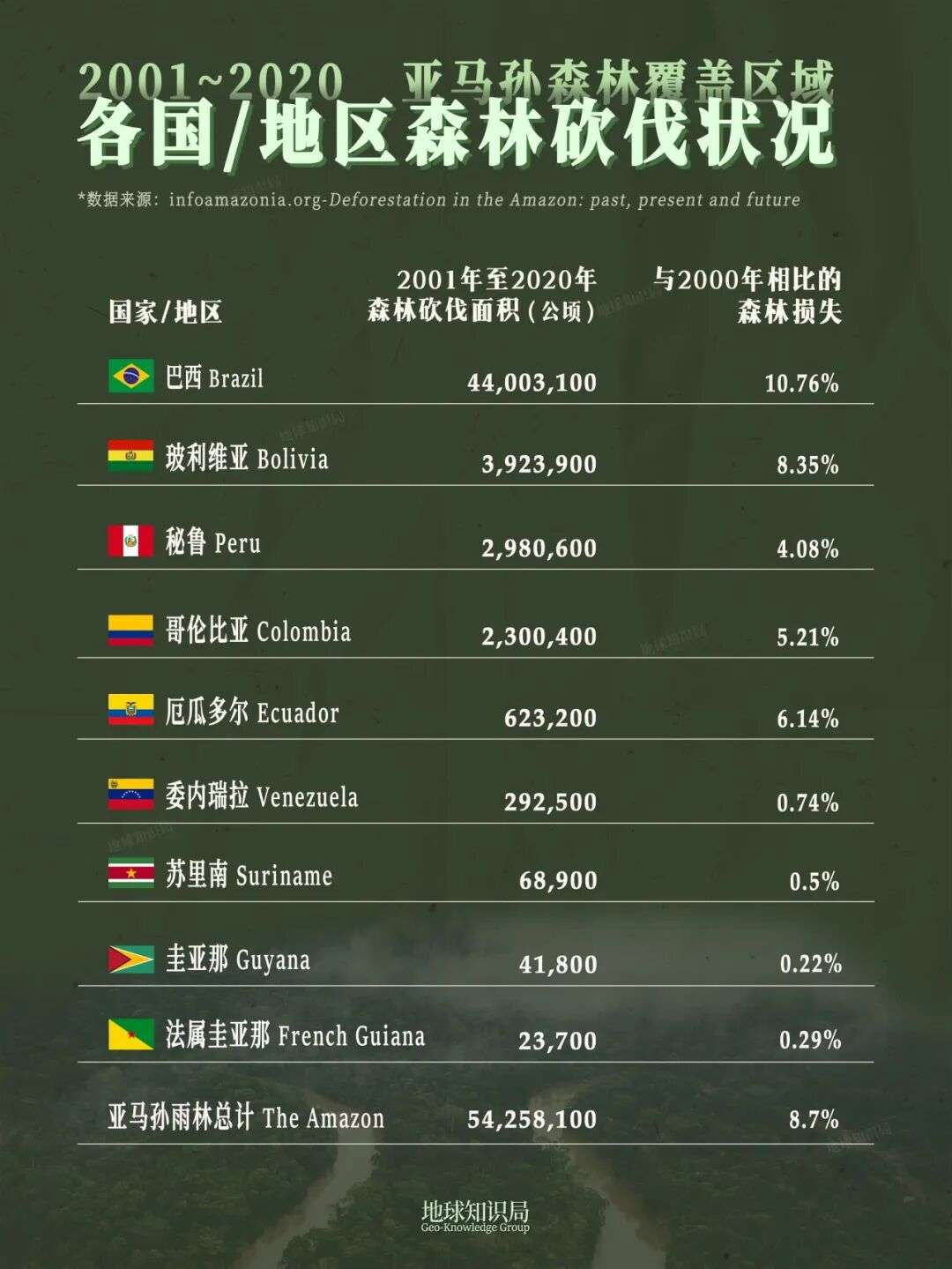 从上世纪至今,亚马孙雨林已经减少了很多,各种统计口径差异不小,但都不低于20%。光是2020年8月到次年7月,砍伐面积就超过了一万平方公里,相当于一个鄂尔多斯市的面积。