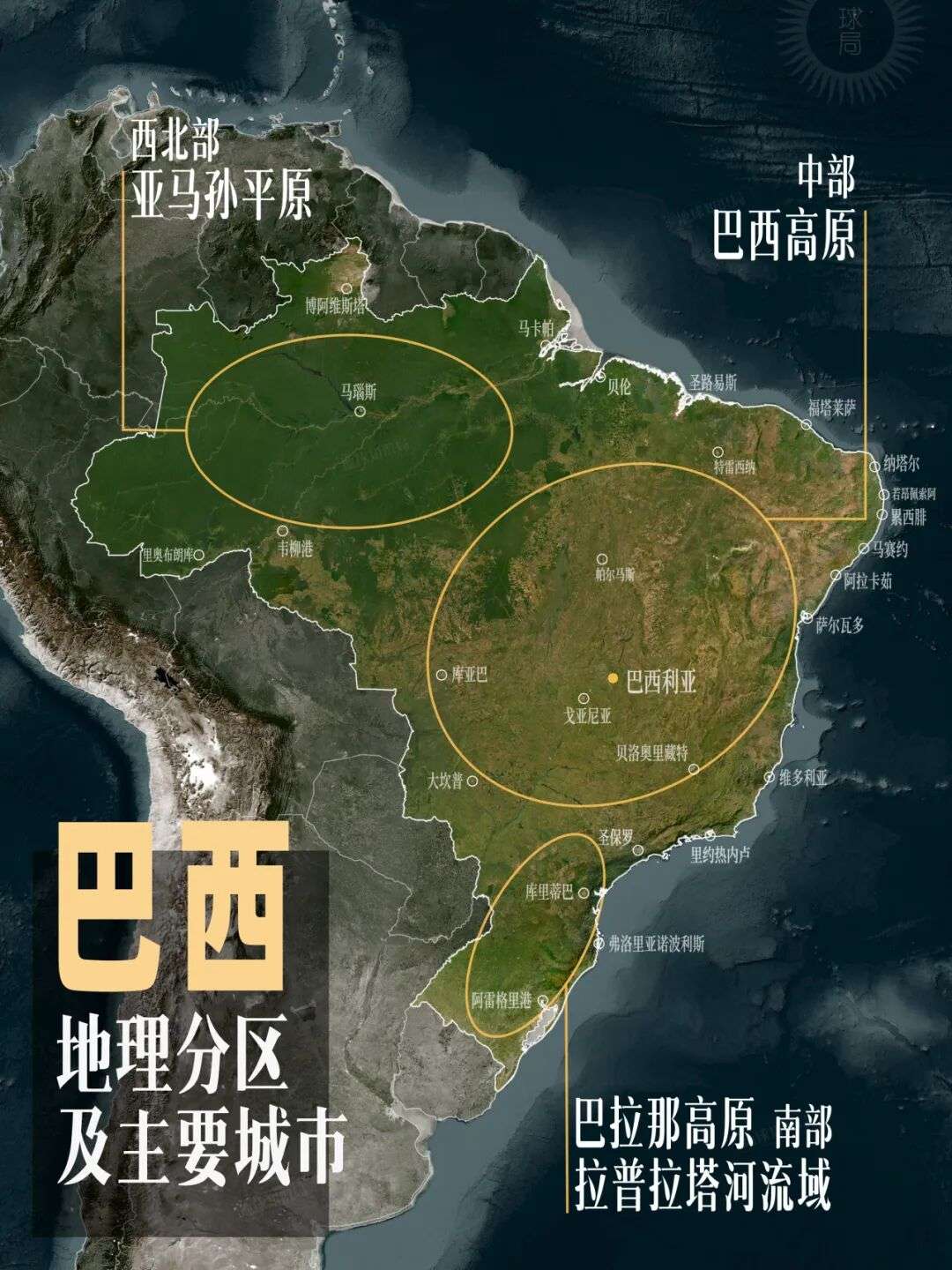 巴西国土面积高达851万平方公里,全球第五大。大体可以看做三大板块:北部的亚马孙平原,中部的巴西高原,东南部的沿海地带和拉普拉塔河流域。