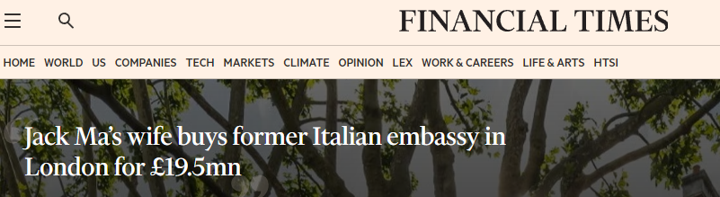 收藏马云妻子豪掷2500万美元买下伦敦前意大利大使馆,家族海外房产版图再扩大