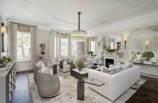 根据英国土地注册处与知情人士消息,这栋豪宅位于伦敦最昂贵住宅区之一贝尔格莱维亚(Belgravia),属英国二级保护建筑。整栋为一座优雅的联排别墅,面积约7,948平方英尺(约740平方米)。这处房产在1920年代曾是意大利大使馆与国防武官办公室,后来改建为私人住宅。
