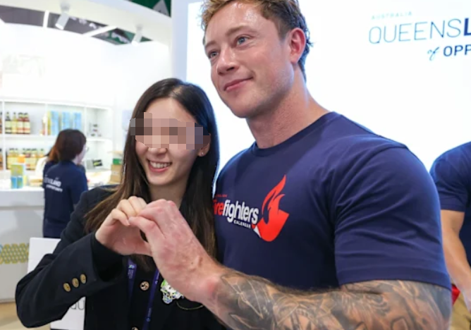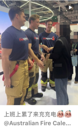 他们穿着标志性的防火裤、贴身T恤,原本安静的展馆,瞬间变成见面会——拿着消防员慈善日历的小姐姐们排起长龙,从乳制品区一路延伸到葡萄酒馆,有人签名到手软,有人收获了“公主抱”一枚。