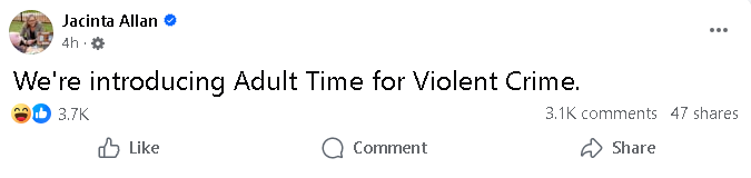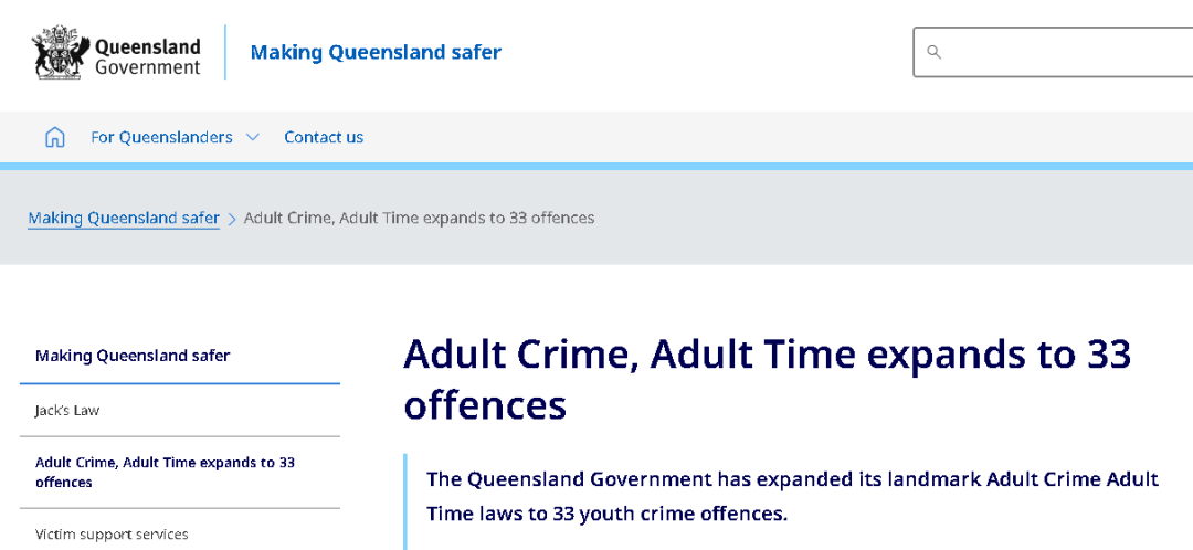 事实上,昆州早在去年就推行了类似政策——“Adult Crime, Adult Time”(成人罪行,成人惩罚):