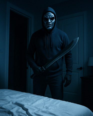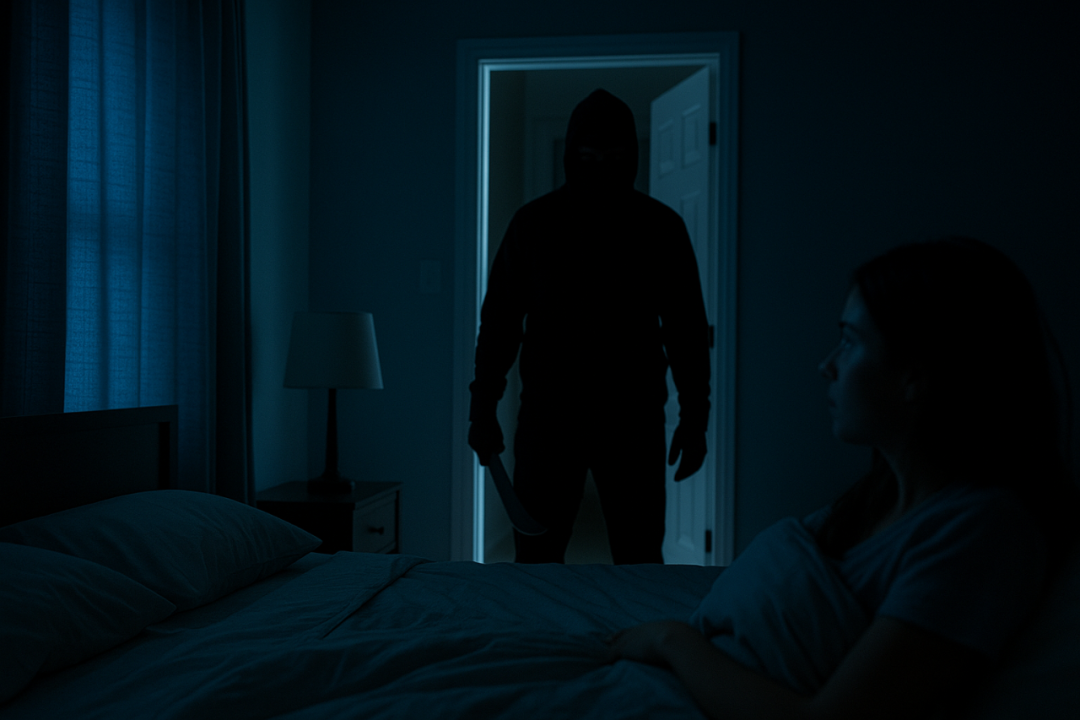 她先以为是室友,直到室友低声示警,抬头的一瞬,她看见一个陌生男人站在床尾,深色皮肤、戴面具和手套,手里握着像“关公大刀”的砍刀!