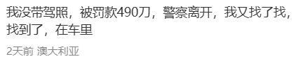 一位网友因没有随身携带驾照被罚490澳元,但更让人“肉疼”的是,其实当时驾照就在车内…