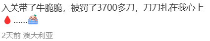 一位华人分享,自己过海关的时候,忘记自己携带了牛肉片,因此没有申报,结果被罚了3700多澳元,感叹“刀刀扎在我心“;