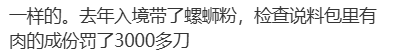另一人则是因为携带的螺狮粉料包中,被检出肉类成分,“喜提”3000多澳元罚款,付出沉重经济代价…