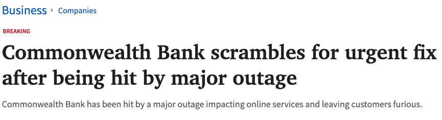 短短几个小时的宕机,让澳洲最大银行之一再一次陷入了信任危机。