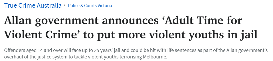 就在今天,在社会各界的积极推动下,维州Allan政府终于宣布,对旧的司法系统进行大规模改革,严惩青少年犯罪,最高刑期终身监禁!