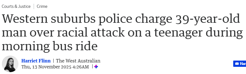 据《西澳人报》11月13日报道,一名男子因涉嫌在上周乘坐经过Nedlands的公交车时,对一名女学生进行种族攻击而被起诉。