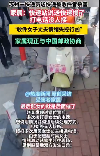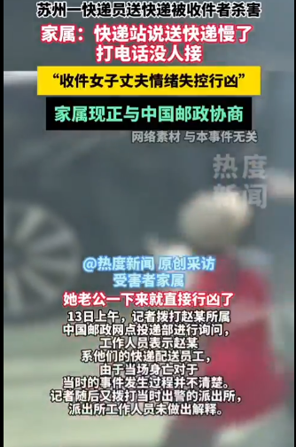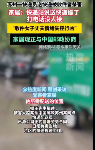 收藏苏州快递员因送错快递,收件人丈夫情绪失控,当场将其刺死