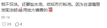 我不仅洗,还要盐水泡,然后苏打粉泡。因为在蓝莓里发现虫卵用放大镜看的。