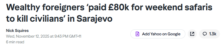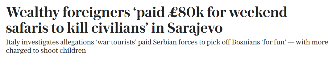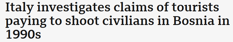 根据官方已经透露出的内容,这是一批富有且对枪支十分热爱的极右翼团体成员,在1990年代波黑战争期间,他们通过买通波黑塞族军队,前往萨拉热窝附近的高地,拿着枪支狙击无辜平民!