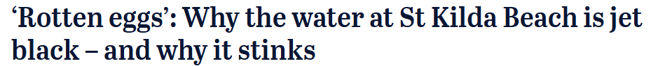 收藏St Kilda海滩海水全黑了! 刺鼻恶臭弥漫, 像臭鸡蛋味! 当局紧急警告: 千万别下水