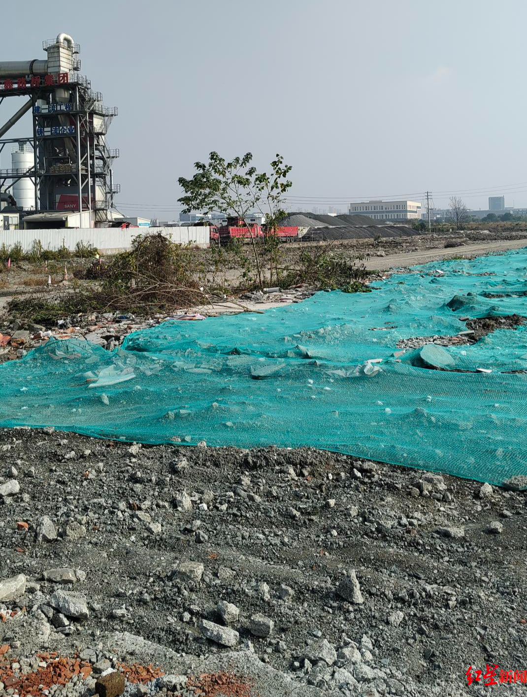 红星新闻记者看到,章簖村位于常溧一级公路旁,村里拆迁后,留下大片被建筑废墟和塑料网覆盖的空地,公路边有少量零件加工和化工厂。