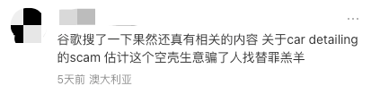 “谷歌搜了一下果然还真有相关的内容 关于car detailing的scam 估计这个空壳生意骗了人找替罪羔羊。”