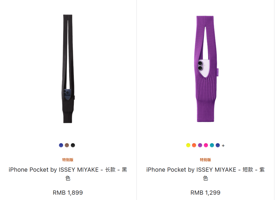 苹果近日在官网上线了与知名时尚品牌三宅一生共同推出的特别版配件iPhone Pocket,用于放置苹果手机。
