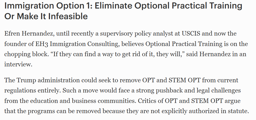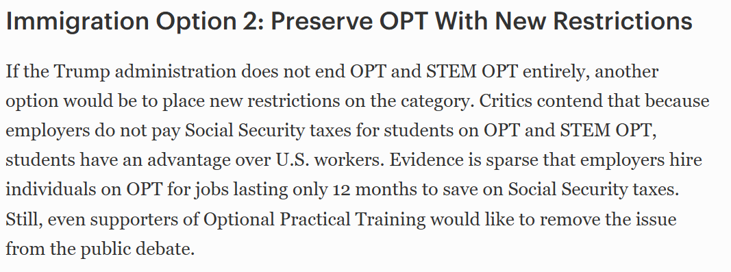 川普政府可能尝试:直接把 OPT 和 STEM OPT 从法规中删除。