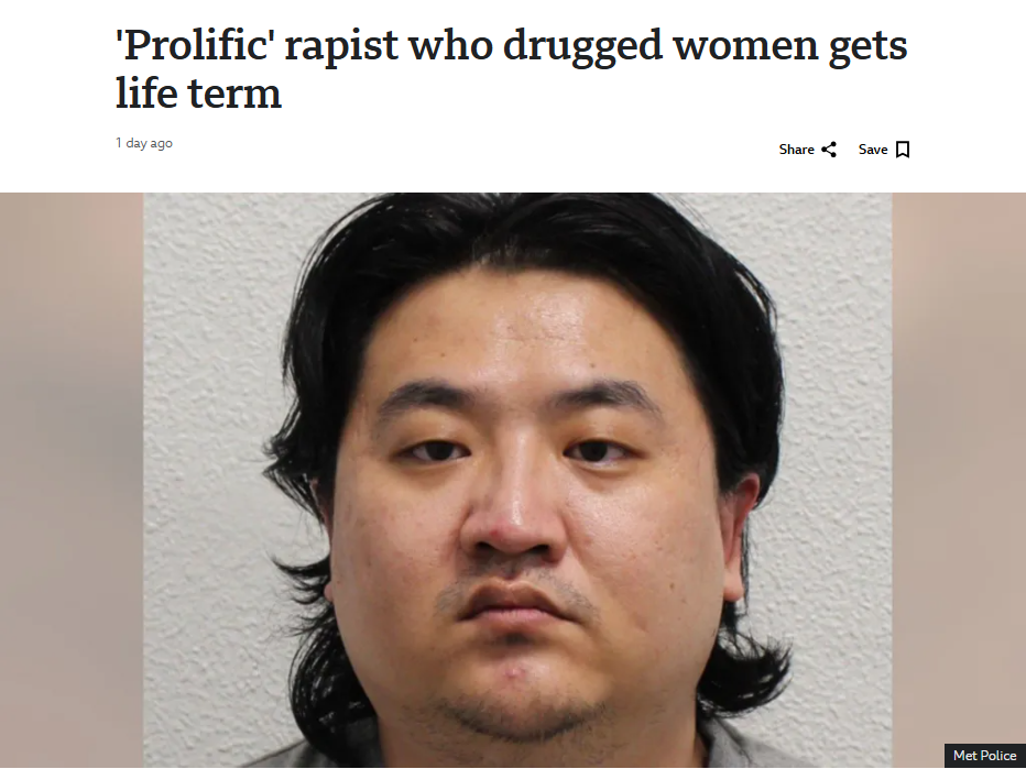 一名中国籍男子在英国犯下连环强奸、迷奸并秘密拍摄受害者等多项罪行,11月14日被判处终身监禁,最低服刑期限为14年。他被视为“史上作案最严重的性犯罪者之一”。