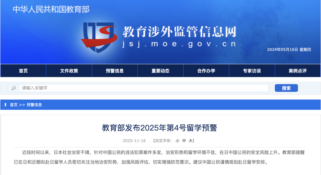 今天(11月16日),教育部发布2025年第4号留学预警: