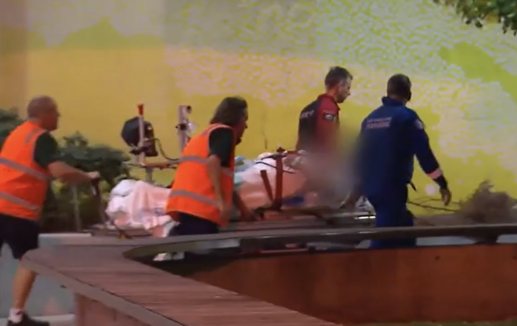 当地时间15日,新南威尔士州一辆赛车失控撞入看台后,伤者被送往医院。图自澳媒