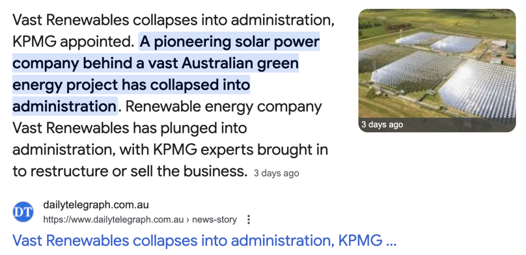 刚刚!总部在澳洲悉尼的可再生能源公司Vast Renewables宣布破产!